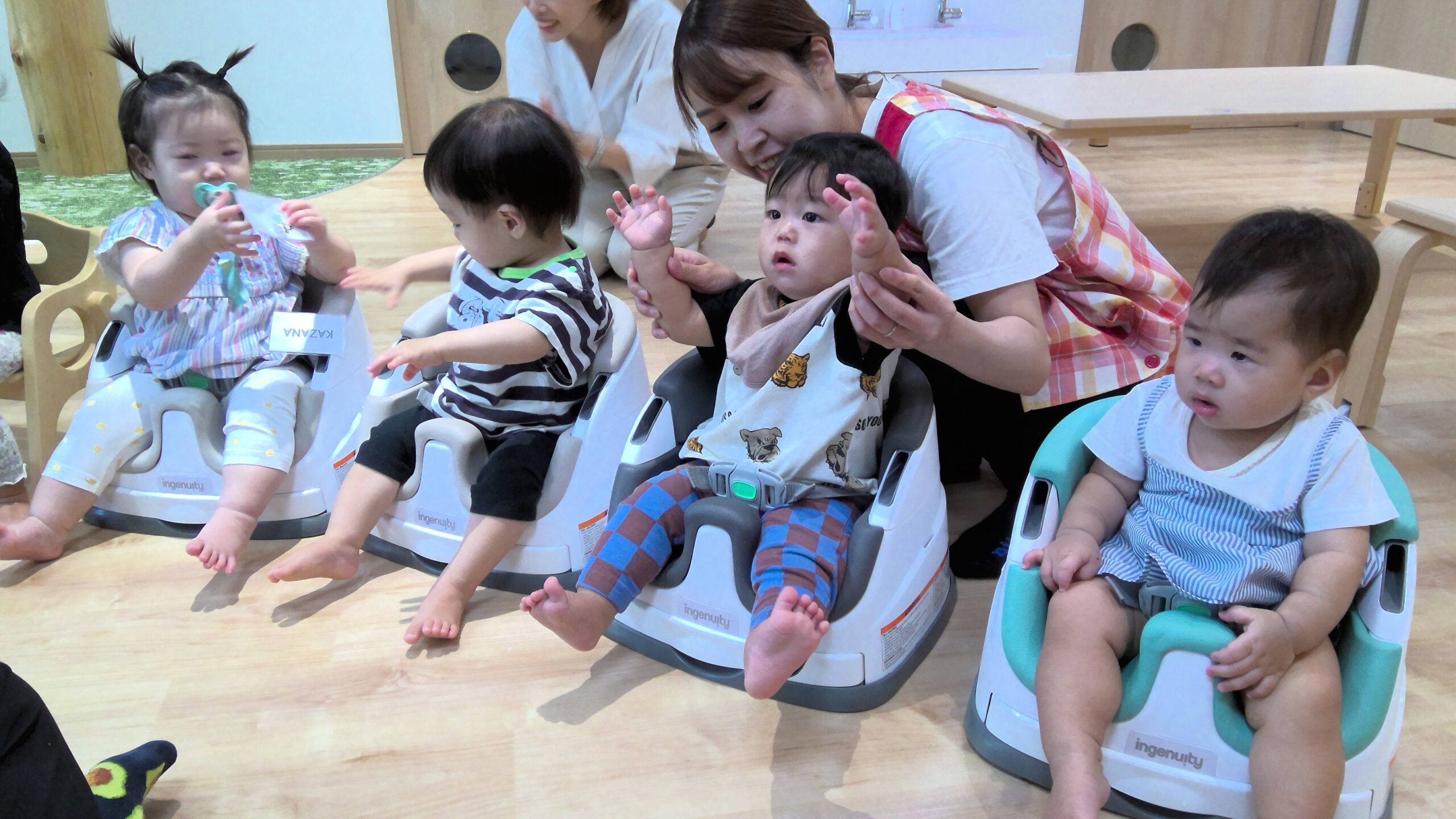乳幼児期にふさわしい豊かな体験を生活や遊びを通して一緒に感じられるように保育します。